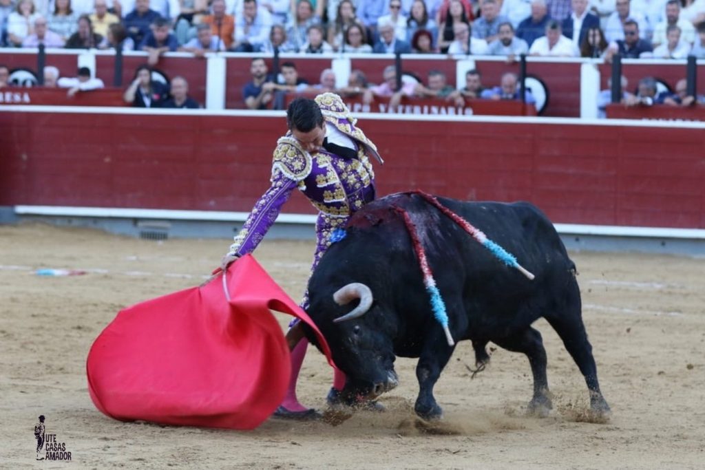 Samuel Navalón se marchó a recibir al primer toro de su vida a la puerta de chiqueros. Tras la larga cambiada, le instrumentó un variado saludo por chicuelinas y gaoneras. El comienzo de faena en el platillo con pases cambiados por la espalda captó rápido la atención del público, continuando después con tandas ligadas y de mucho temple, exigiéndole poco a poco más al de Jandilla en el transcurso del trasteo. Estocada arriba. Oreja con fuerte petición de la segunda y tres vueltas al ruedo. Bronca importante al palco presidencial.