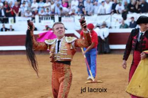 Plaza de toros de Dax (Francia). Segunda corrida de toros de la Feria ‘Toros y Salsa’. Lleno. Astados de la ganadería de Santiago Domecq, 3º y 4º premiados con la vuelta al ruedo.