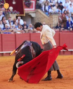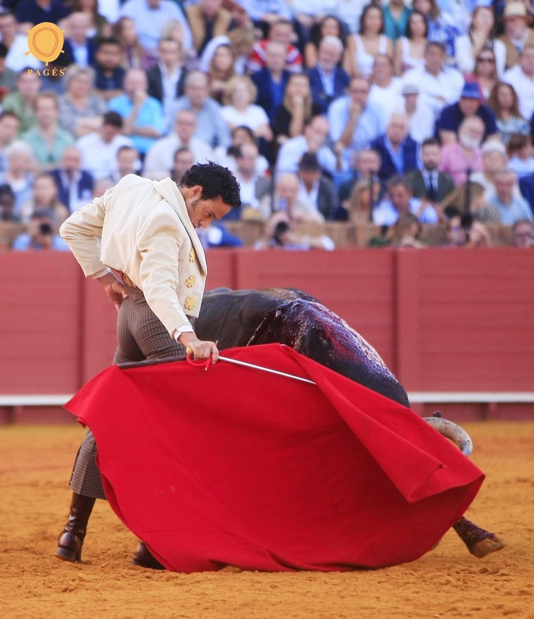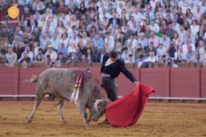 Barbilla en el pecho y buen juego de brazos de Oliva Soto en el recibo al cuarto del festival, de El Parralejo. Lo condujo hasta el caballo de picar con chicuelinas al paso. Torería en el comienzo de faena del matador de Camas, por bajo, cuajando una labor muy rotunda, redonda, por ambas manos, con el torero relajado, encajado, asentado, a placer, pero exigiendo por abajo al animal y éste respondiendo. Bravo y con mucha entrega el de El Parralejo, al que tumbó de un certero espadazo Oliva Soto. Dos orejas. Gran imagen e importante dimensión del torero camero hoy en la Maestranza.
