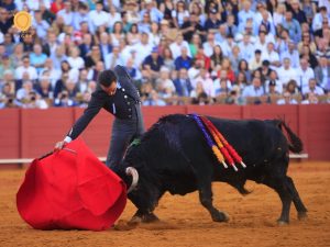Todos los diestros actuantes brindaron sus faenas al Maestro Curro Romero, que ocupó un palco de la Real Maestranza.