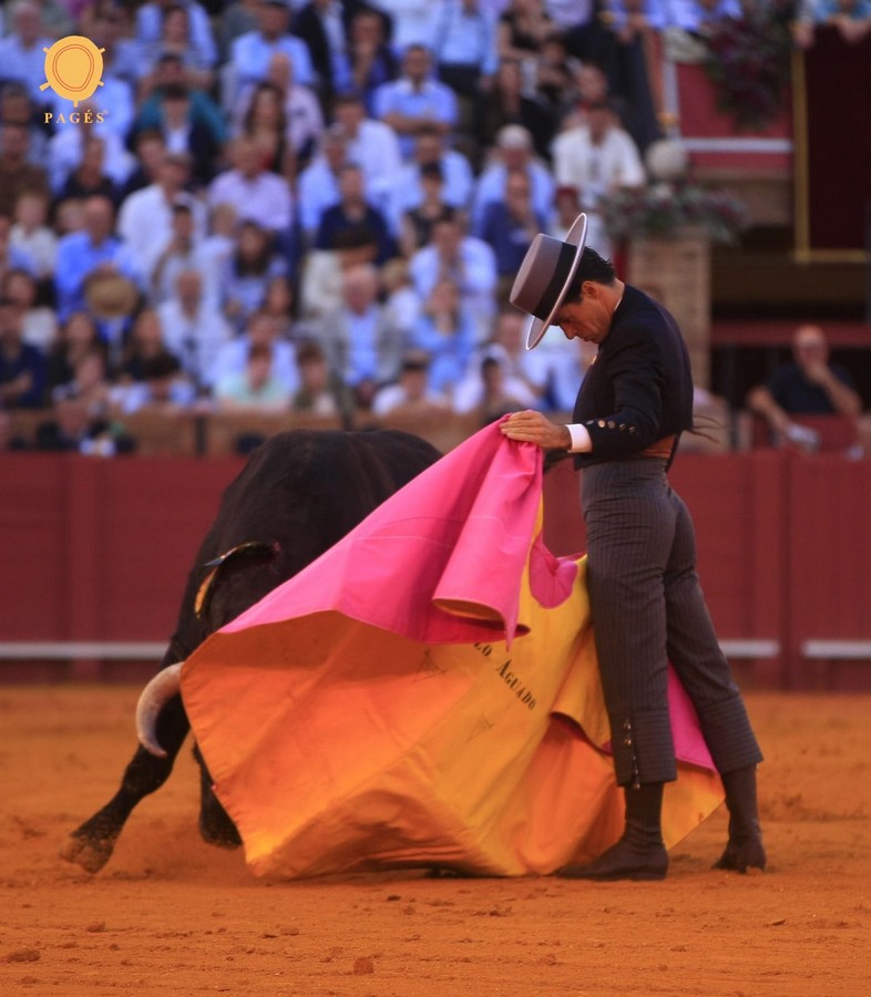 Se lució con el capote, tanto en el saludo como en los quites, uno por delantales y otro por chicuelinas, Pablo Aguado, con un cornúpeta noble pero muy medido en la raza en los primeros tercios, con el hierro de El Vellosino. Así continuó en los siguientes, por lo que el torero sevillano tuvo que emplearse y ponerle mucho para que el conjunto tuviera relieve, resaltando sobre todo el temple, el gusto y la naturalidad, con un toro al que le faltaron finales. De lo mejor de la faena, la postrera serie de naturales, citando de frente, a pies juntos y cargando la suerte. Estocada entera. Oreja.