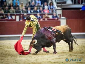 Plaza de toros de Las Ventas de Madrid. Quinto festejo de la Feria de San Isidro. Cuarta corrida de toros. Lleno. Cornúpetas de la ganadería de El Parralejo, nobles pero sin casta ni bravura. Desfondados y protestando ante la exigencia en el último tercio.