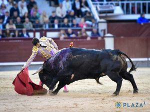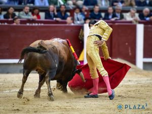 El cuarto ejemplar de El Parralejo huye del caballo de picar al sentir el hierro en el primer puyazo, saliendo también suelto tanto en el segundo como en el tercero. Gran lidia de Daniel Duarte y soberbios pares de banderillas de Jesús Díez “Fini” y Vicente Herrera, que saludan la ovación del público. En el centro del ruedo se ha plantado de rodillas para iniciar la faena Miguel Ángel Perera, con un pase cambiado por la espalda y una tanda en redondo también de esta guisa, que ha puesto a la plaza en pie. Muy exigentes, de mano muy baja han sido las siguientes series de Perera, tanto que afligen al cornúpeta. Faena de entrega y mucho poder del matador pacense, toreando con verdad, y llevando hasta el final al toro. Pinchazo y espadazo caído. Silencio tras aviso.