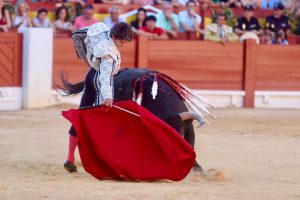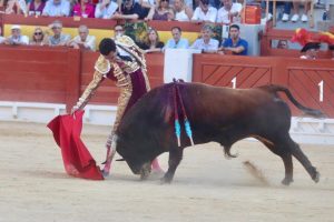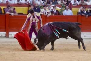 Sobrero: ‘Cabezón’, Nº 51 (Zacarías Moreno). Con delantales despaciosos recibió Sebastián Castella al ejemplar del hierro madrileño. Este sobrero, al igual que los anteriores toros, sacó buena condición, nobleza y fijeza en las primeras series, pero apenas duró cuatro tandas. Además la justeza de raza le hacía derrotar a la tela roja al final del viaje. Castella inició su labor con la franela en el centro del ruedo con un pase cambiado por la espalda, pero el burel, como queda dicho se apagó enseguida. Después se pegó un arrimón Castella, ejecutando varios circulares invertidos para llegar al público. Como en su anterior turno, el fallo con la espada dejó sin premio al diestro de Beziers. Ovación tras aviso.