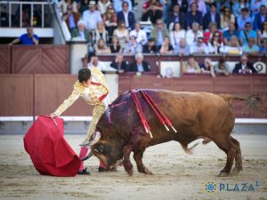No se emplea en el peto el segundo de la suelta, demostrando no tener demasiada fijeza. Saluda José Chacón en banderillas, buena lidia también de Rafael Viotti. Muleta por delante de Sebastián Castella en las primeras series, pasándolo con temple y aprovechando la nobleza y la clase del astado de la divisa salmantina. Dándole su tiempo, metiéndose más en los terrenos del toro conforma avanzaba el trasteo, dónde se le ve muy a gusto. Dura poco el animal de La Ventana del Puerto. Concluye su labor con manoletinas. Espadazo trasero y caído. Aplausos tras aviso.