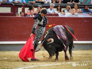4º ‘Bichino’, Nº 31. Salió suelto el toro de El Parralejo en el segundo puyazo, echando la cara abajo a la salida en el capote. Misma tónica del resto de la corrida continuó en el cuarto, es decir, un toro noble aunque en este caso derrotando al final del viaje con la intención de atrapar la tela roja, pero con muy poca emoción en su embestida. Faena perfecta técnicamente hablando de Miguel Ángel Perera, que limpió muy bien los muletazos, logrando que no te tocara el engaño pese al defecto ya señalado con anterioridad. Corrió la mano con temple y buen trazo, sobre todo con la zurda. Estocada entera trasera y tendida. Silencio.