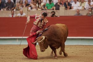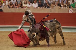 Plaza de toros de Pontevedra. Segunda y última corrida de la Feria de la Peregrina. Más de tres cuartos de entrada. Ejemplares de Alcurrucén, el primero lidiado como sobrero tras ser apuntillado el titular por lastimarse en el ruedo.