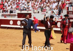 Los tres rejoneadores han salido a hombros del coso francés gracias a un gran encierro de Murube