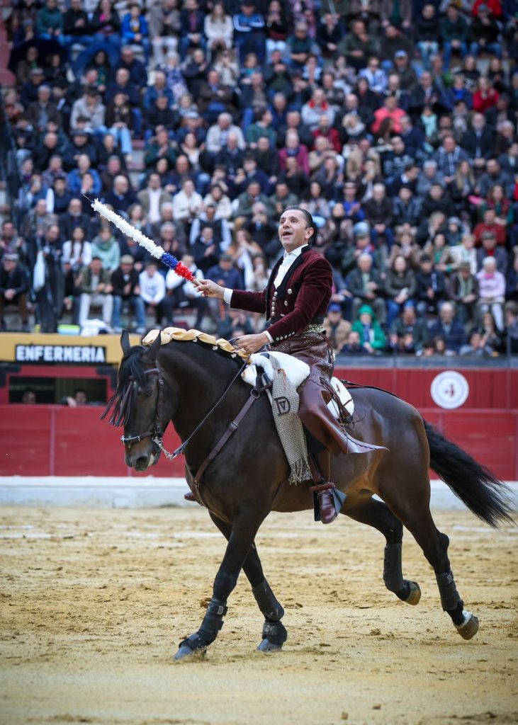 Faena emocionante, por el riesgo asumido de Diego Ventura al primero de la tarde, un astado noble y con calidad, de María Guiomar. Pureza en los cites y en la reunión del rejoneador que puso la plaza en pie por su raza y pundonor. Rejonazo arriba. Dos orejas y rabo y vuelta al ruedo al animal del hierro portugués.