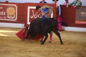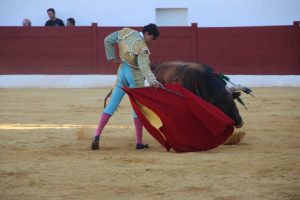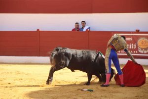 Con una larga cambiada saludó Martínez al cuarto novillo de la tarde, ‘Extravío’. El animal desarrolló nobleza y buena condición en el tercio final, aprovechando esa nobleza y clase Manuel Martínez, que se fue confiando y cuajando una labor notable, consiguiendo los momentos de mayor altura del trasteo con la mano diestra. En la parte final de la faena se mete más en los terrenos de cercanías, ejecutando varios circulares muy templados. Ante todo hay que resaltar la entrega y la disposición del alumno de la Escuela Taurina de la Diputación de Málaga. El punto y final de la obra muleteril de Martínez fueron unas ceñidas manoletinas. Estocada entera. Dos orejas tras aviso.