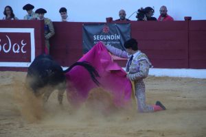 Personalidad demostró Quintana en el recibo por verónicas al tercero del festejo, ‘Hermosuro’, ejecutadas con pellizco y gusto. Vuelve a lucirse posteriormente en un quite por chicuelinas. Faena muy importante de Manuel Quintana, que brindó al ganadero de la tarde, toreando con expresión, con naturalidad por ambos pitones, sobresalientes algunos de los pasajes con la mano izquierda, haciendo las cosas muy despacio y con torería, funcionándole la cabeza delante del animal. Muy por encima del ejemplar de Apolinar Soriano, que manseó claramente en los primeros tercios, siempre buscando la huida al que pudo y sometió Importante y torería de Manuel Quintana. Dos pinchazos y estocada arriba. Oreja con petición de la segunda tras dos avisos.