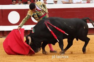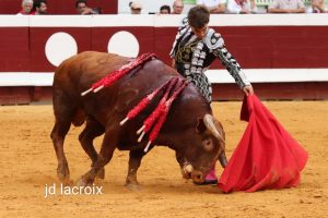 Plaza de toros de Dax (Francia). Feria de Agosto. Segundo festejo. Novillada sin caballos. Media entrada. Erales de Gabriel Rojas.