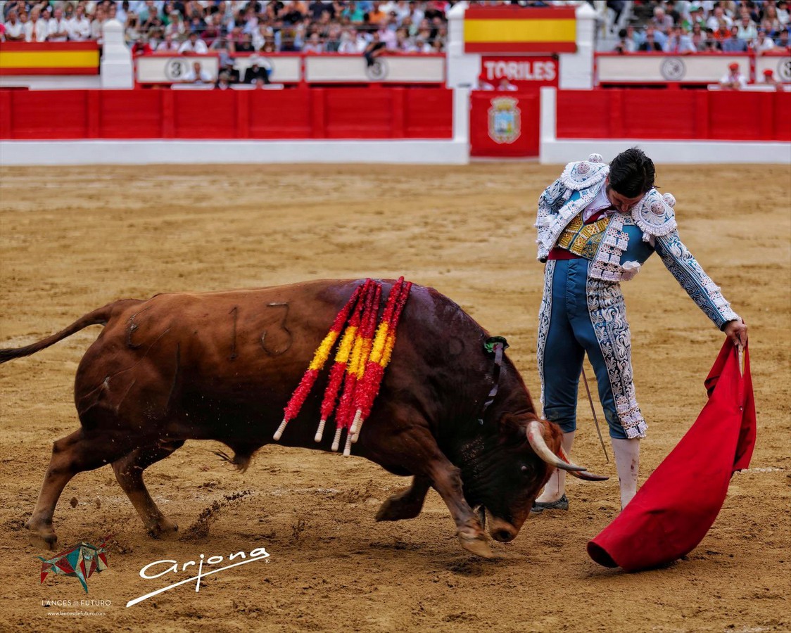 Morante se las vio con un primer toro de El Pilar, al que recibió por verónicas. No tuvo mucha clase el animal y el sevillano dejó una faena de detalles, donde destacó su toreo al natural. Fue ovacionado.