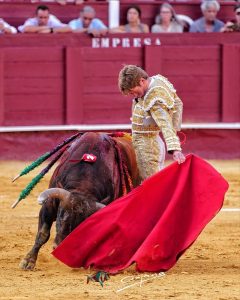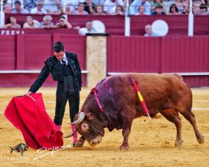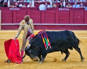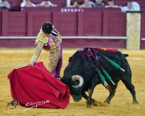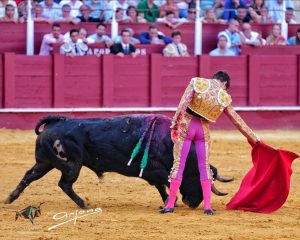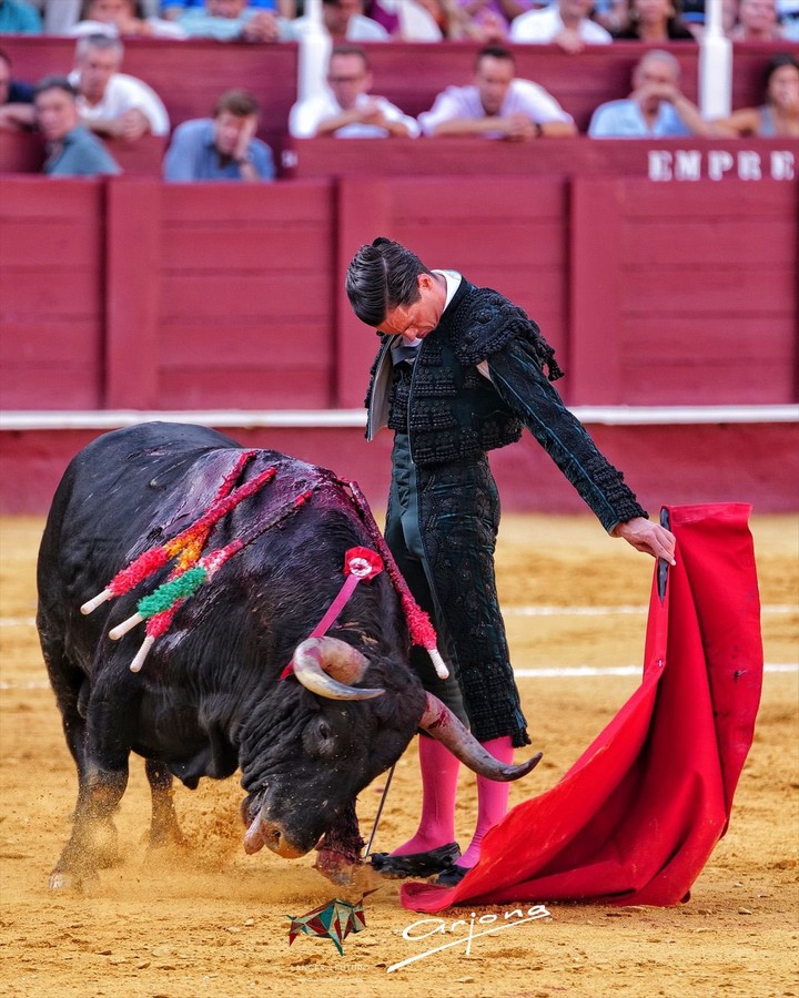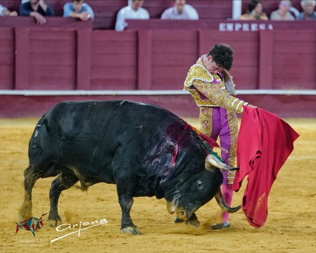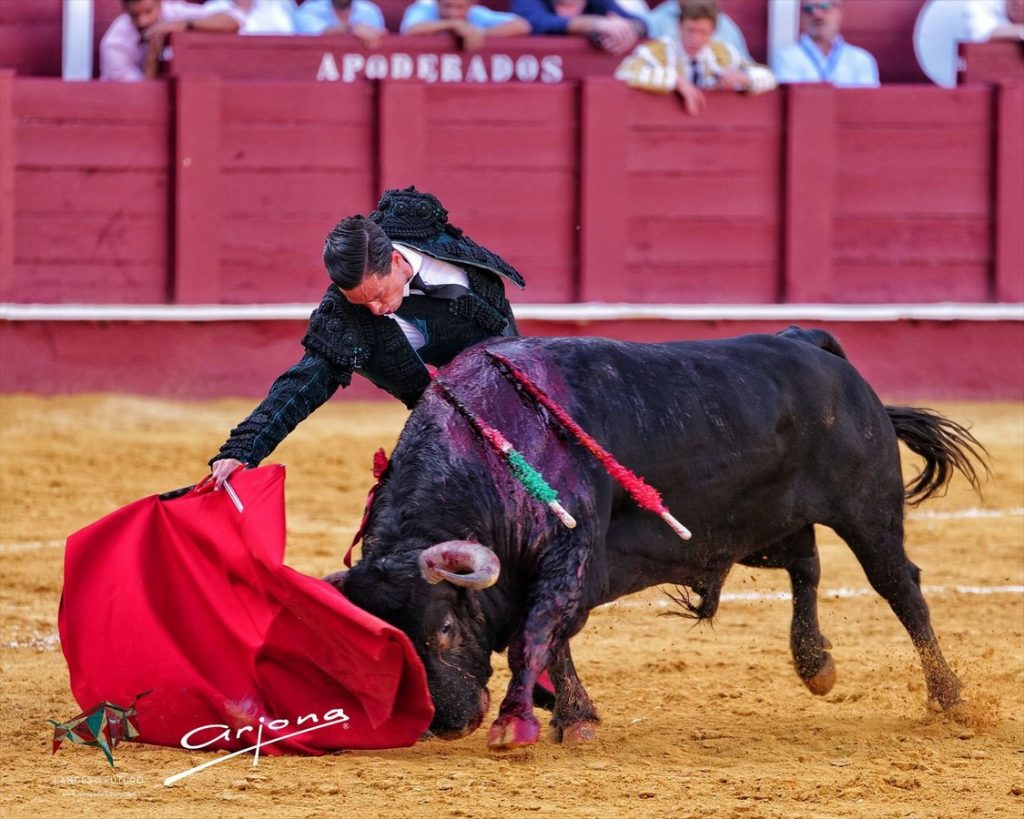 El sevillano cuajó una gran faena en el quinto. Bien con el capote. Quite por chicuelinas. Faena en los medios que inició con un pase cambiado. Rotunda actuación de Jiménez, faena templada, con series de mano baja con la derecha. Final por manoletinas. La pena la espada.