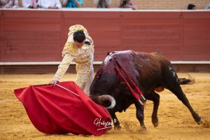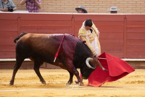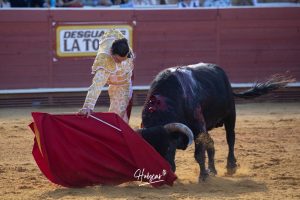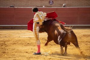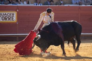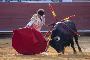 A porta gayola recibe Molina al tercero de la suelta. Gran pelea del astado en varas, empujando por derecho. De rodillas ha comenzado la faena el matador albaceteño, saliendo del trance el animal con una voltereta fuerte. El resto del trasteo ha estado condicionado por esta caída, aunque éste ha ido a más, adaptándose a lo sucedido en el inicio de la labor muleteril. Asentado, encajado, dándole sus tiempos y estructurando muy bien la faena y el toro aprendiendo a moverse con la limitación indicada. Mucho mérito el de Molina con este segundo astado de su lote. Espadazo caído. Oreja tras aviso.