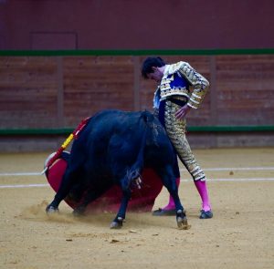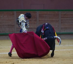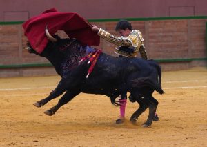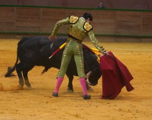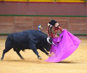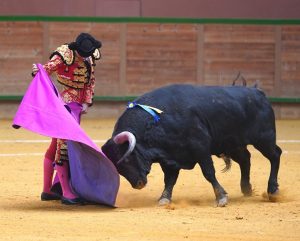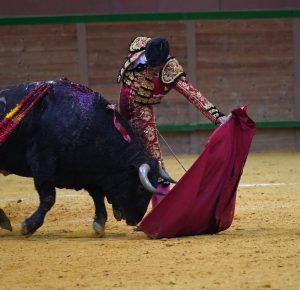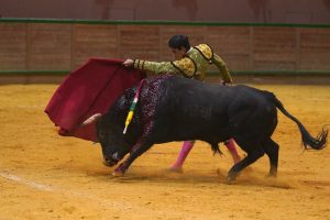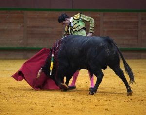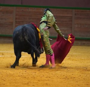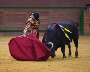 El novillero riojano, formado en la Escuela Taurina de Valencia, recorrió el anillo tras pasaportar al primero de su lote. Disposición de la terna con una sosa novillada de Murteira Grave