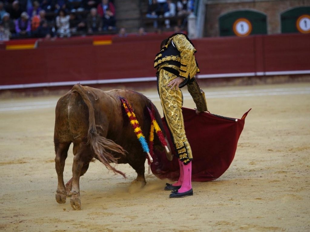 La obra de Torrejón estuvo marcada por la entrega y una gran tanda al natural, aunque la espada, al tercer intento, le privó de pasear algún trofeo y acabó dando una vuelta al ruedo. En su primer novillo, sin opciones, se justificó ante un astado deslucido.